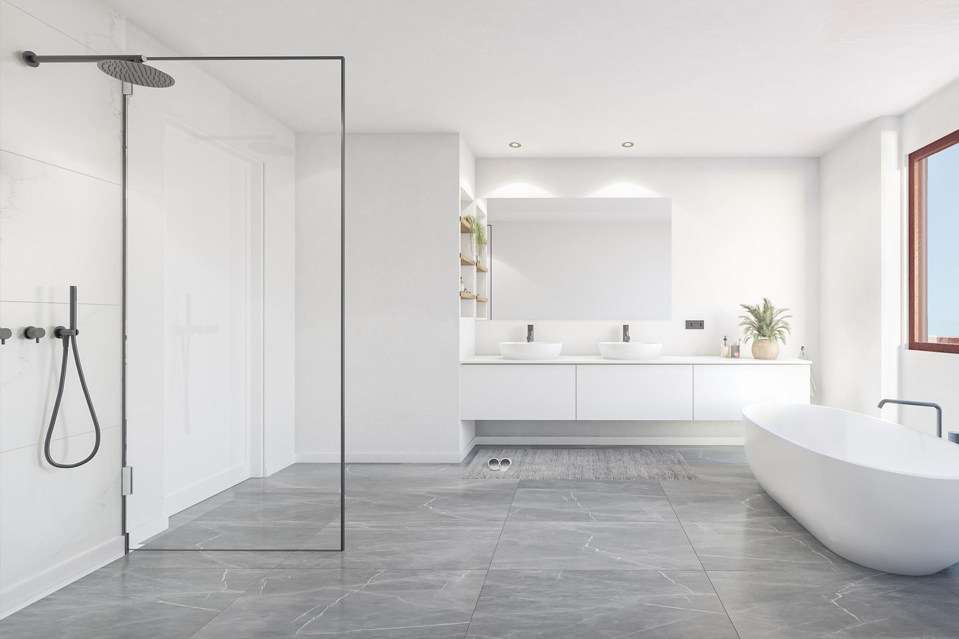 Essentieel is dat je badkamer aansluit op je persoonlijkheid. Daarom bieden we je de mogelijkheid om de ‘look & feel’ van deze badkamer te ervaren in onze verkoopscontainer ter plaatse. Wil je voor andere materialen kiezen? Dat kan! Kies je niet voor dit sanitair en tegels dan beschik je over een budget te kiezen bij onze onderaannemer.